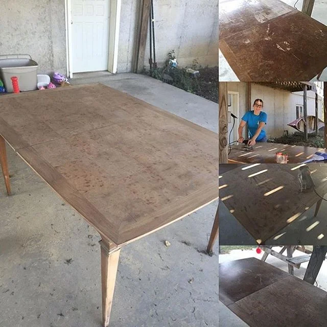 Last year I had found this amazing table at a goodwill store, it was a steal at $20! Did I mention it has 4 extensions so this table is perfect for entertaining?! I have been slowly sanding it down to get it ready for new stain/paint. I will make a DIY post about the refinishing the table sometime in the future when I get that project done.