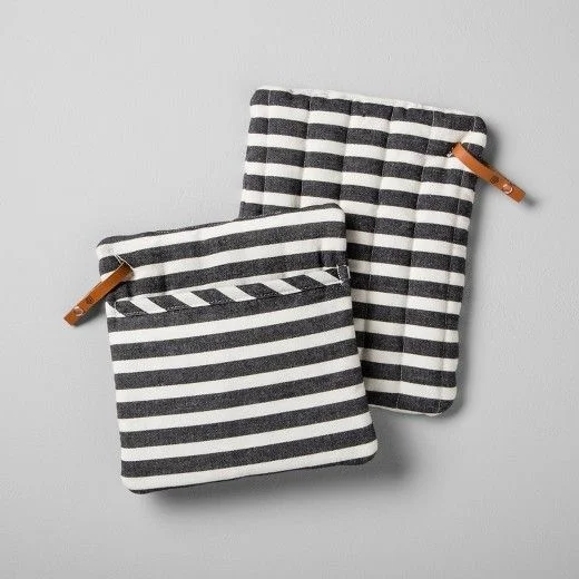Your kitchen will thank you if you bring these pieces in. We love the perfect stripes on these stylish pot holders and their neutral colors make them a great addition to any kitchen style. These footed trays will add warmth to your kitchen with their gorgeous wood tones. Use them to give potted plants a little lift or for displaying your favorite pieces on your counter or shelving.