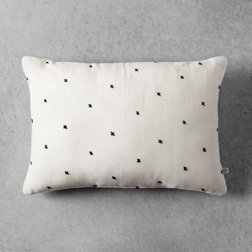 The little white pillow has big style with its X-pattern dotted all over it. Pair it with the black knit wool pillow for a super cozy feel.