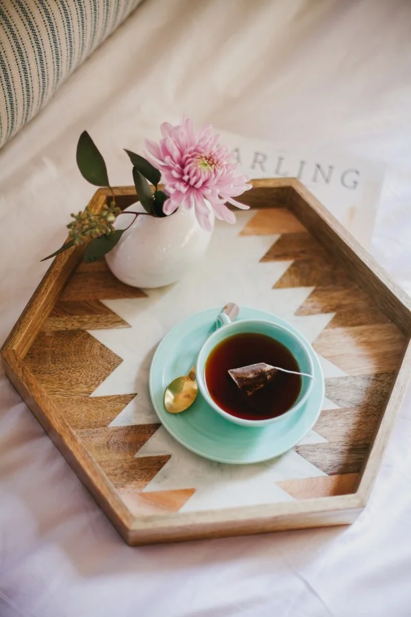I love trays, they are so multi-functional and I think everyone should have at least one in their home. You can use it as a way to contain your vignettes or my personal favorite, breakfast in bed! Find one in a cool shape like this one shown for even more interest.
