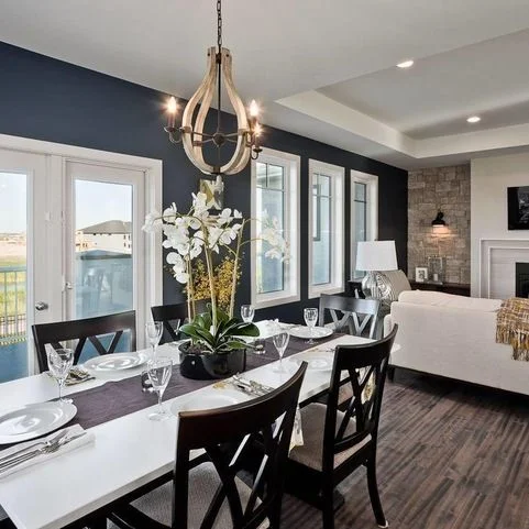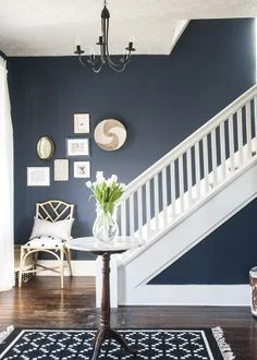 Next up is this fun Indigo Ink color by Behr. This color goes well with lighter wood finishes and when this color is paired with white wainscoting, it will create one stunning room.