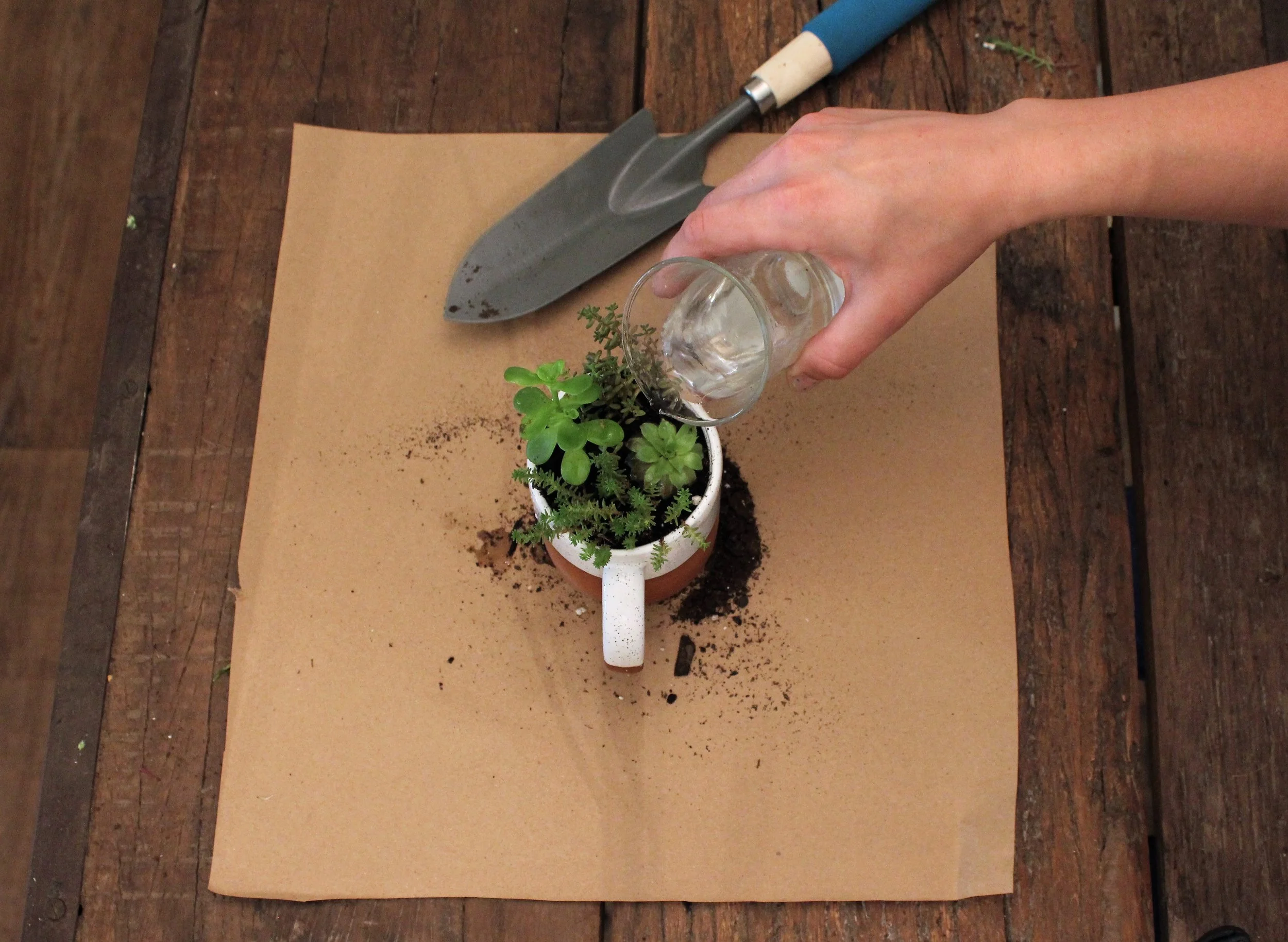Finally, give your succulents a drink of water. Water them about once every two weeks and keep them in a sunny spot with indirect light.