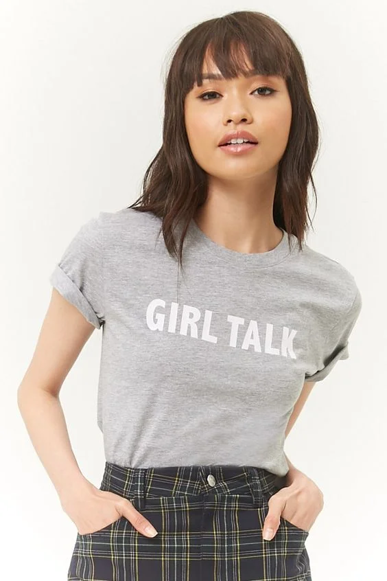 I think this plaid backpack would be perfect for adventuring out to the zoo or farmers market. It has a stylish plaid pattern, a rolled top handle and adjustable shoulder straps. Feeling a little sassy? This heathered knit tee has a crew neckline and "Girl Talk" printed on the front. This top would be super cute paired with a leather moto jacket or a cardi and some stylish frames.
