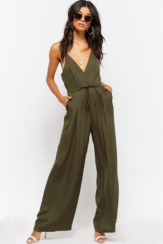 There is something about a jumpsuit that makes me feel like a bad-ass. Olive is becoming one of my favorite colors for this fall season. This jumpsuit has a beautiful surplice neckline, thin straps, a self-tie waist and palazzo legs.