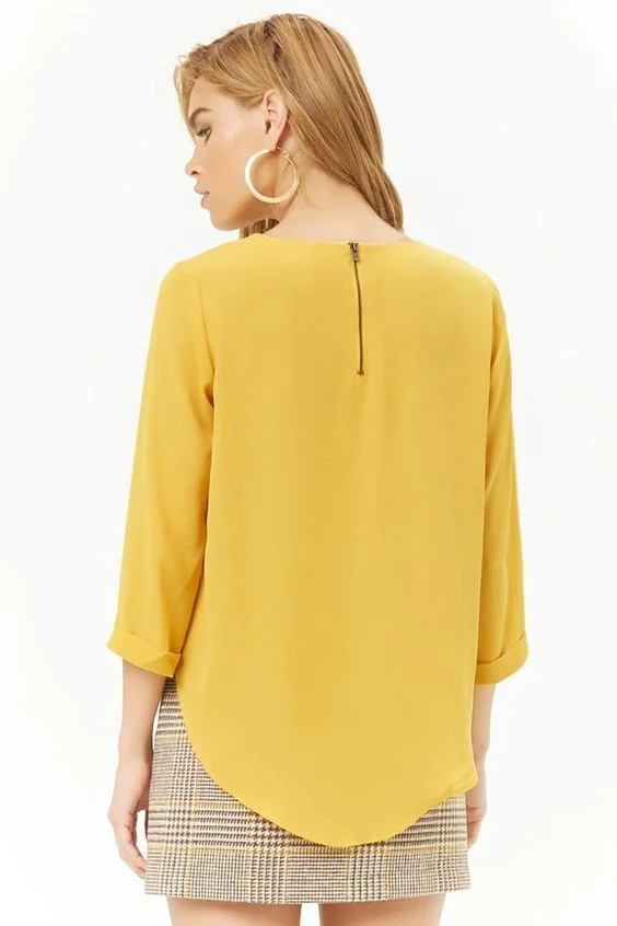 Doesn't this Chiffon top look chic? With its scoop neckline, cuffed sleeves and a curved hem it is sure to be a great addition to my closet! One of the features I like best is the exposed back zipper. I plan on wearing my hair up to showoff this cute detail.