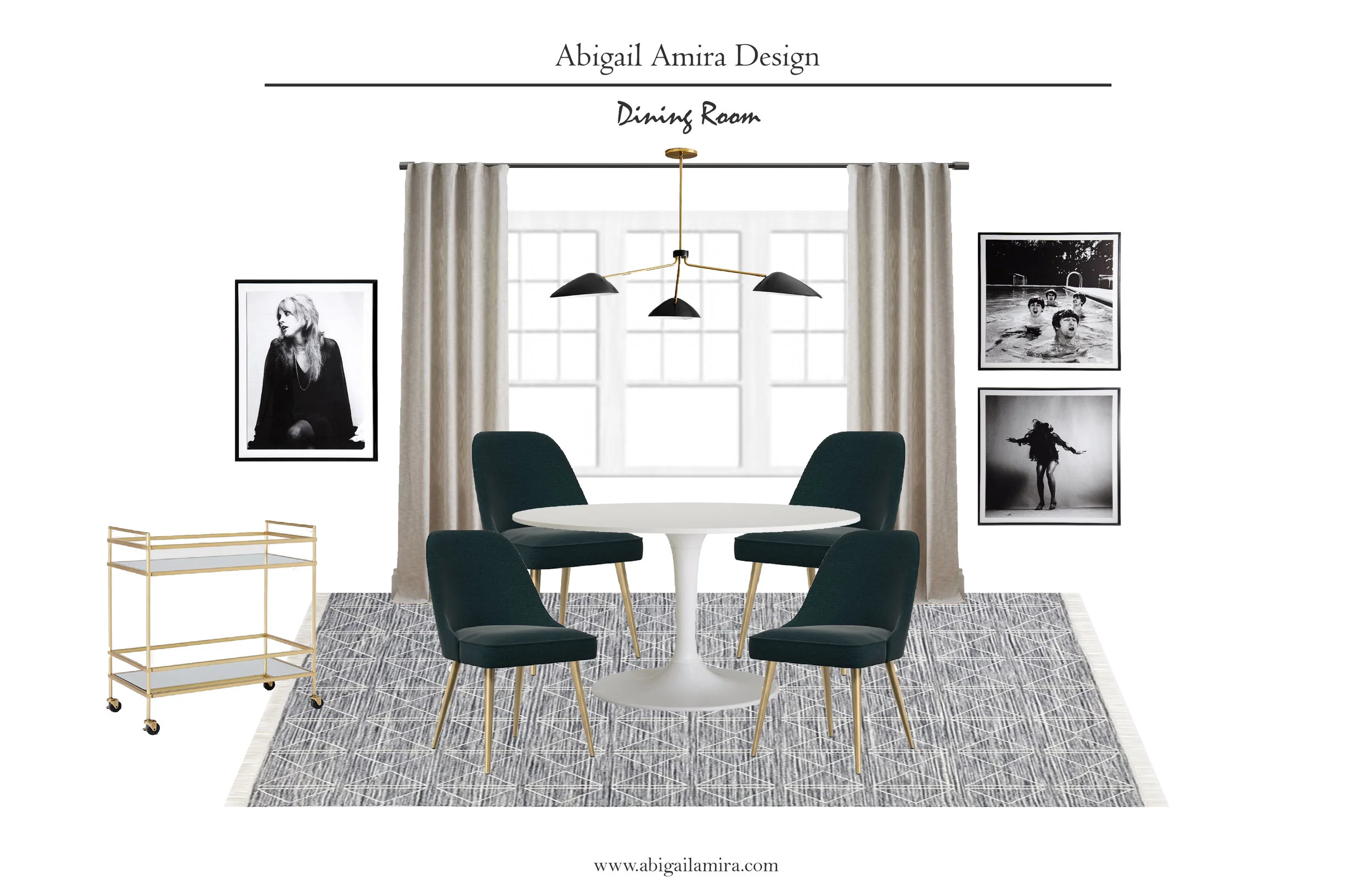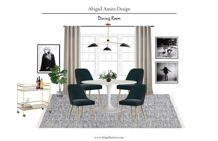 I imagined this room as being on the smaller side so I added a small bar cart to the room for extra storage. I like that it can be moved around while entertaining. You could replace this option with a buffet if you have a larger space.