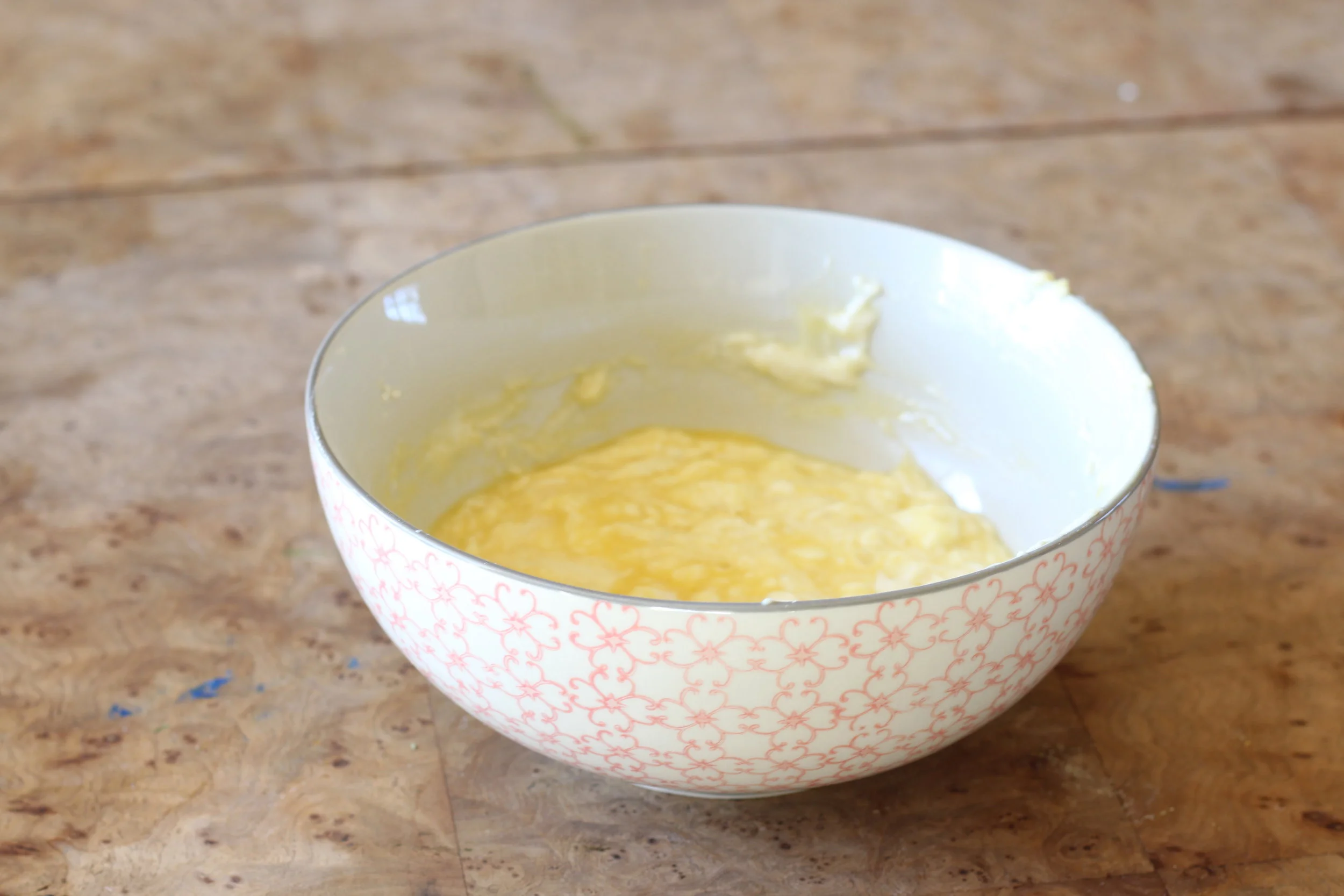 I whisk together the two eggs and vanilla in a separate bowl and then I pour it into the yogurt mixture.