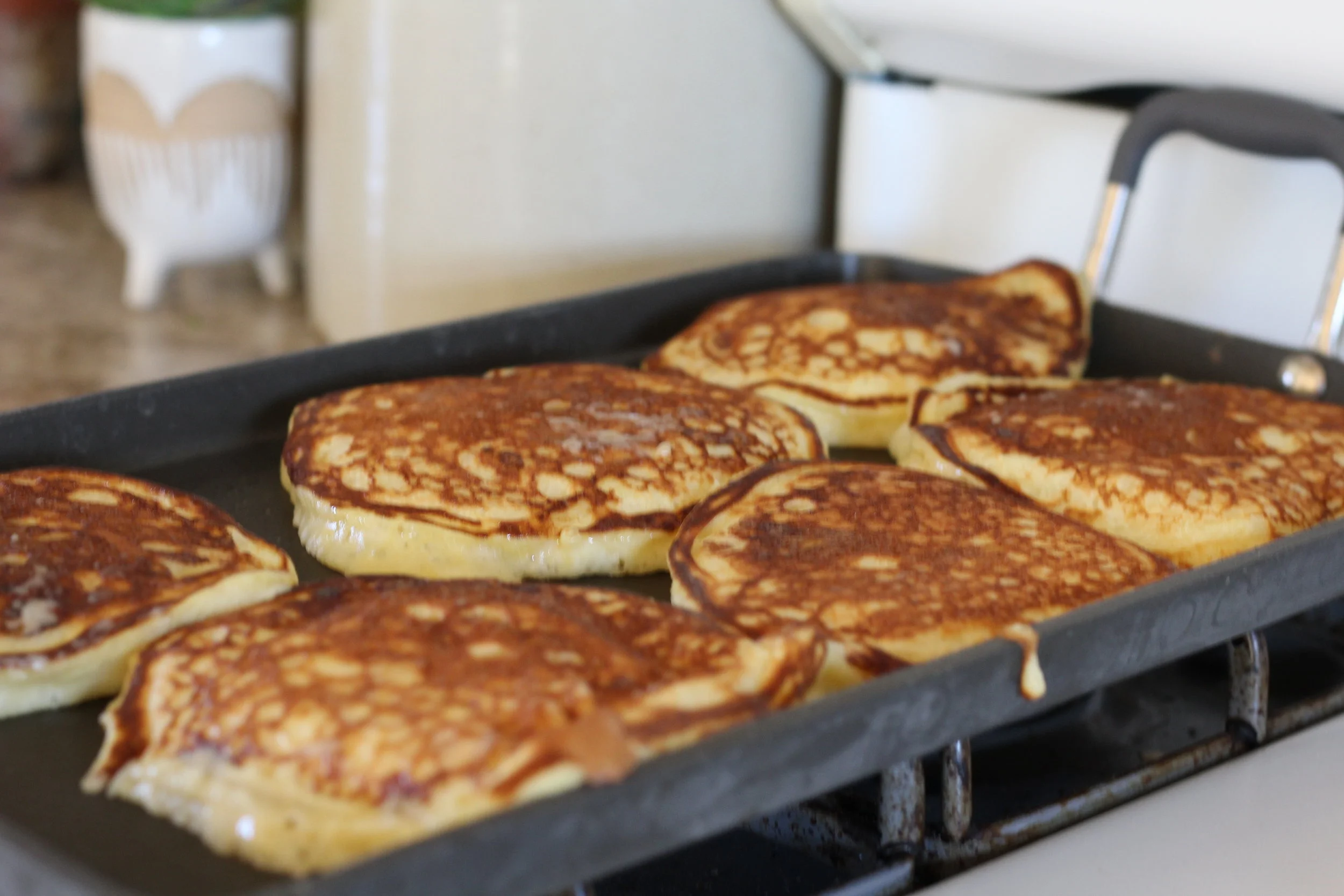 I had some requests to share one of my family’s favorite recipes, Greek Yogurt Pancakes! We eat these pancakes at least once a week. They are so light from folding in the ingredients, I can never go back to boxed pancake mixes.