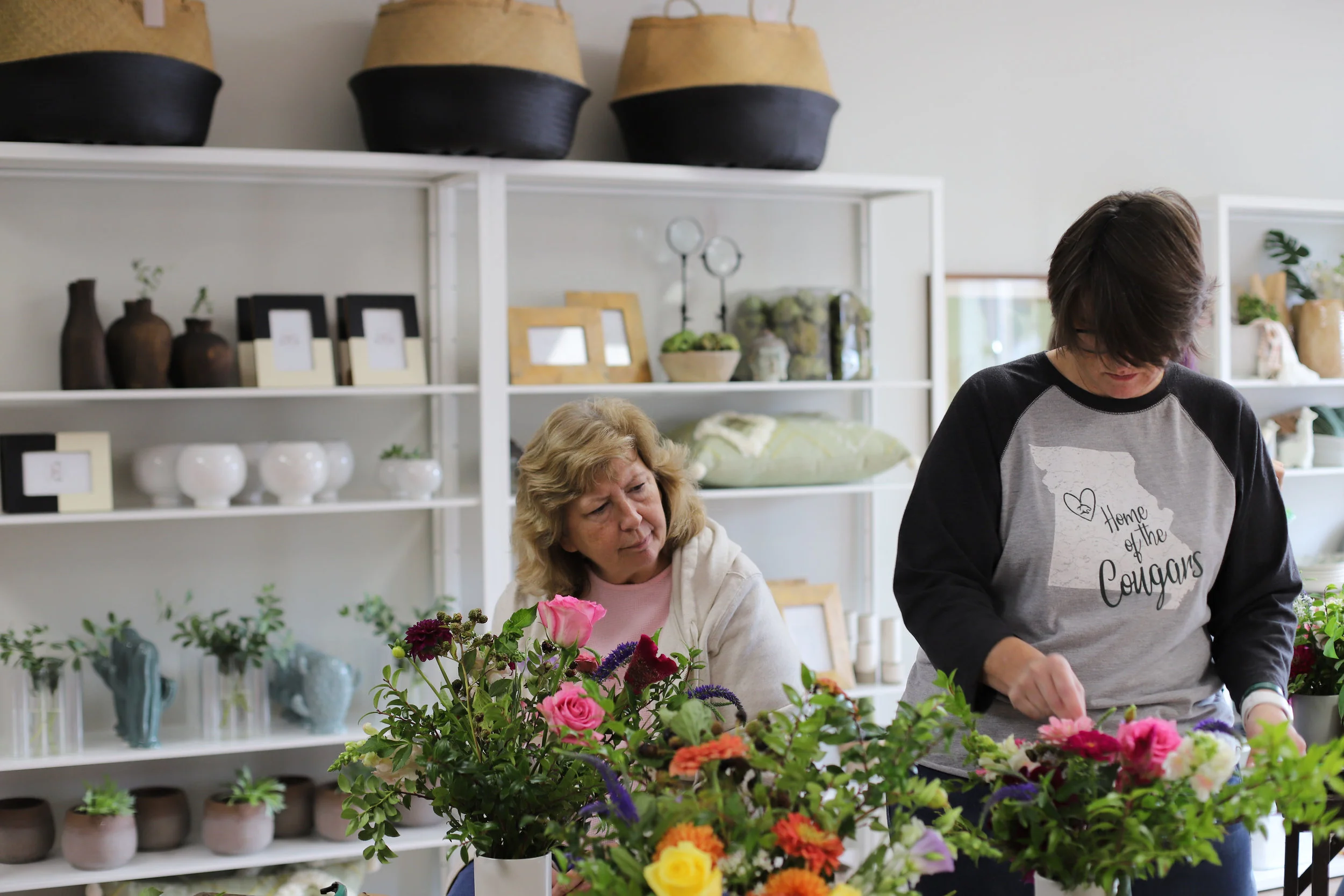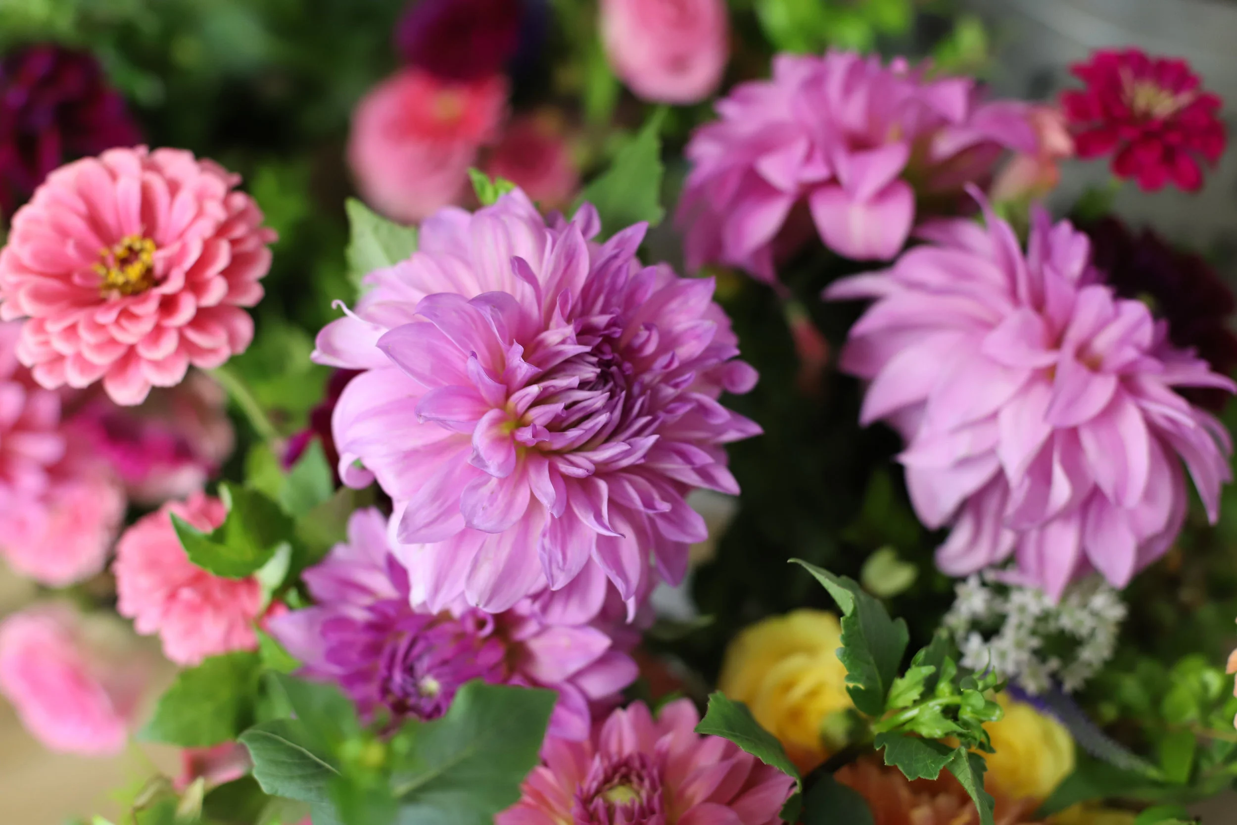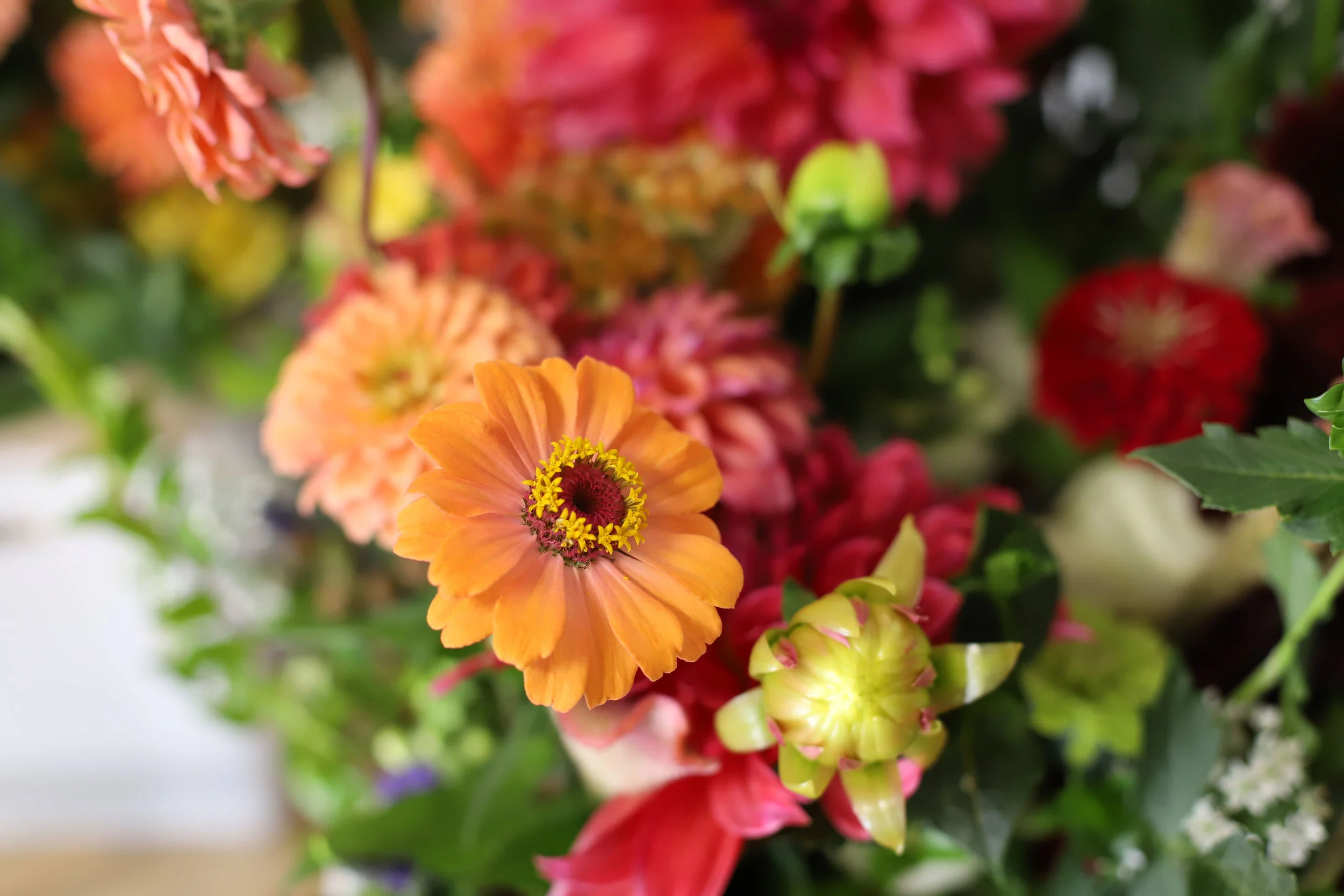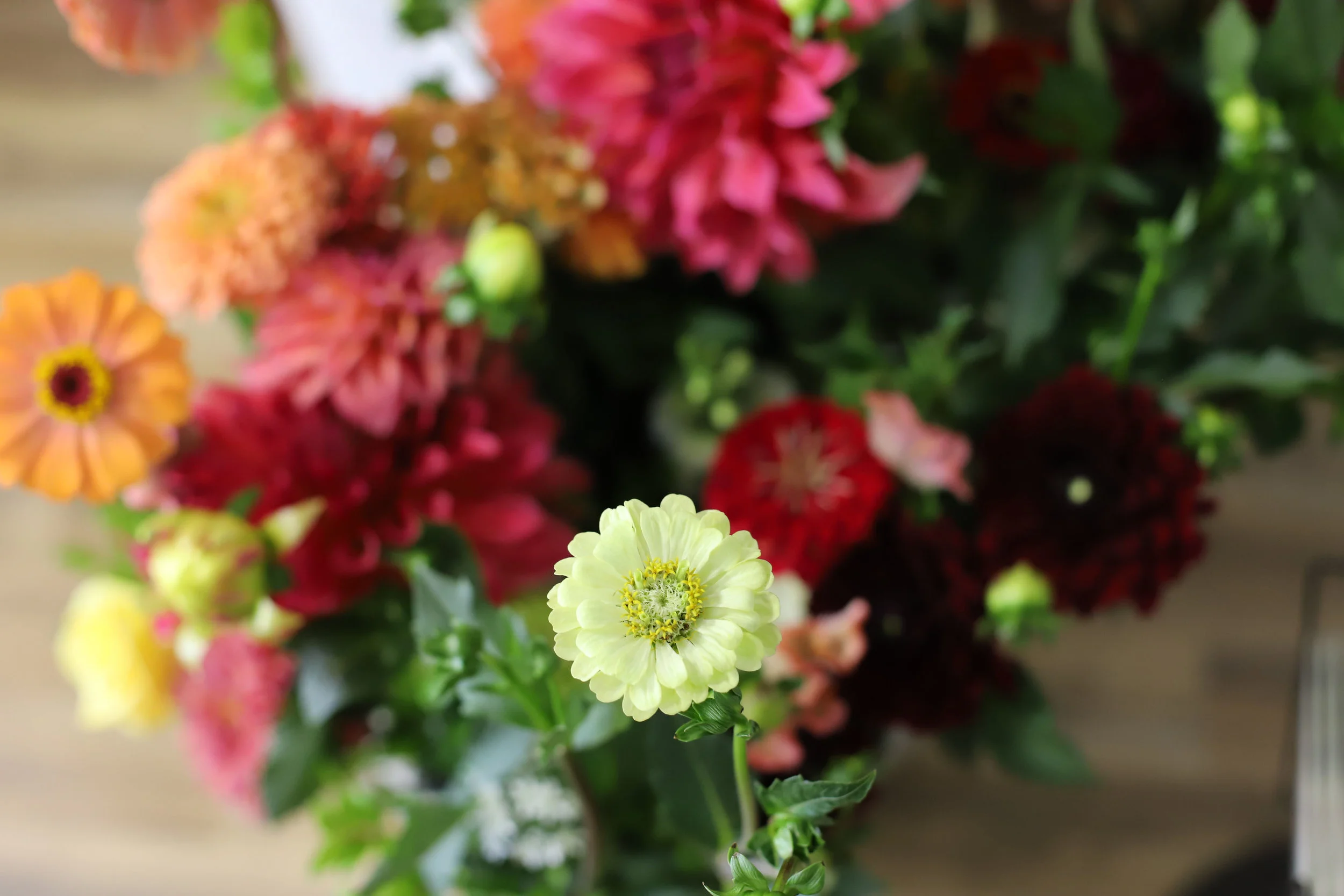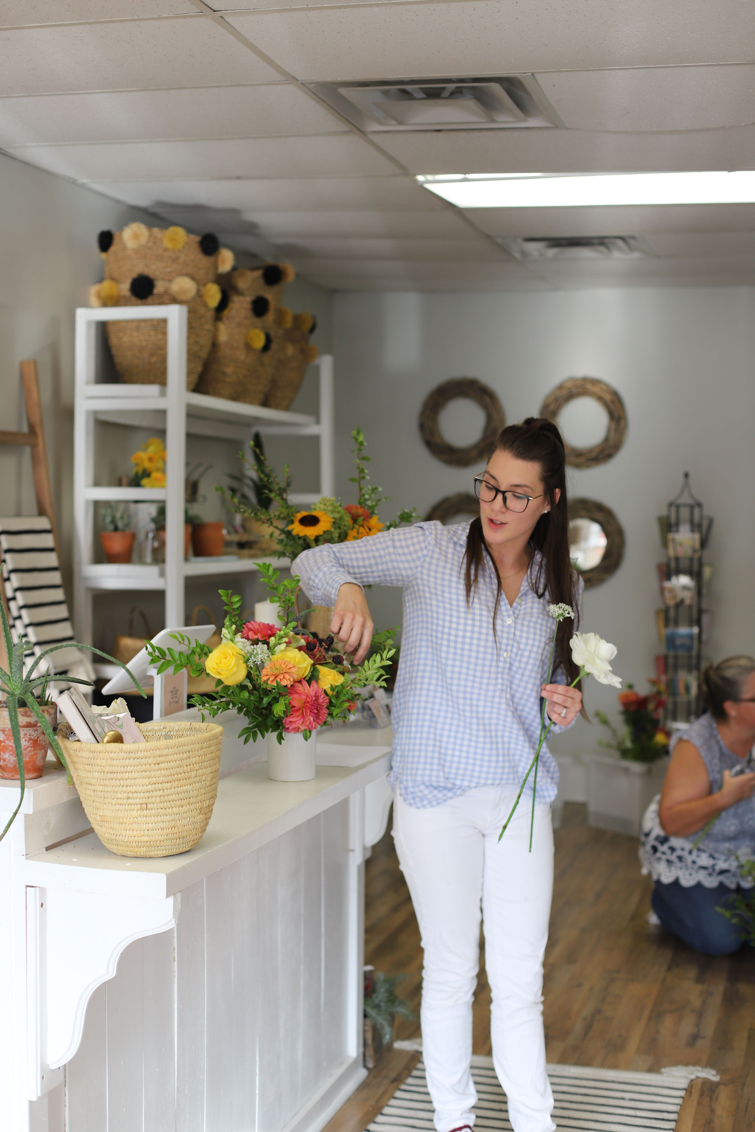 IN AUGUST, THE SHOP WAS FILLED WITH BEAUTIFUL LOCALLY SOURCED DAHLIAS, ZINNIAS, ALLIUM, SNAPDRAGONS, VERONICA AND CELOSIA. WE HAD SUCH A FUN NIGHT CREATING A GORGEOUS FLORAL CENTERPIECE!