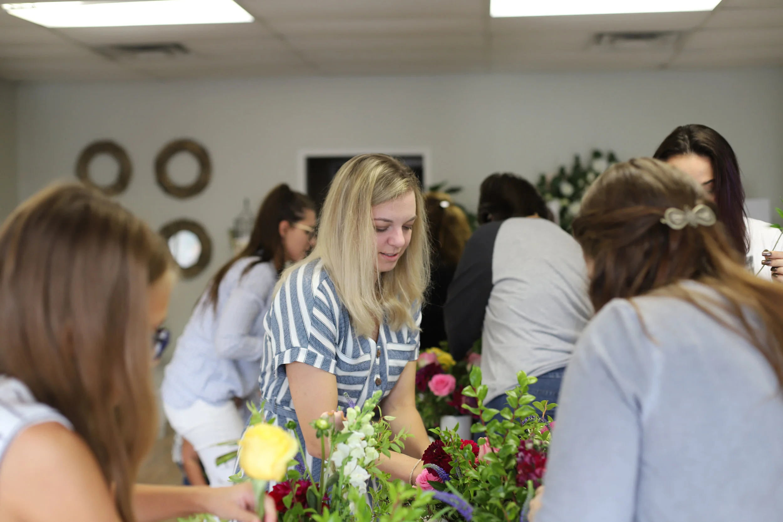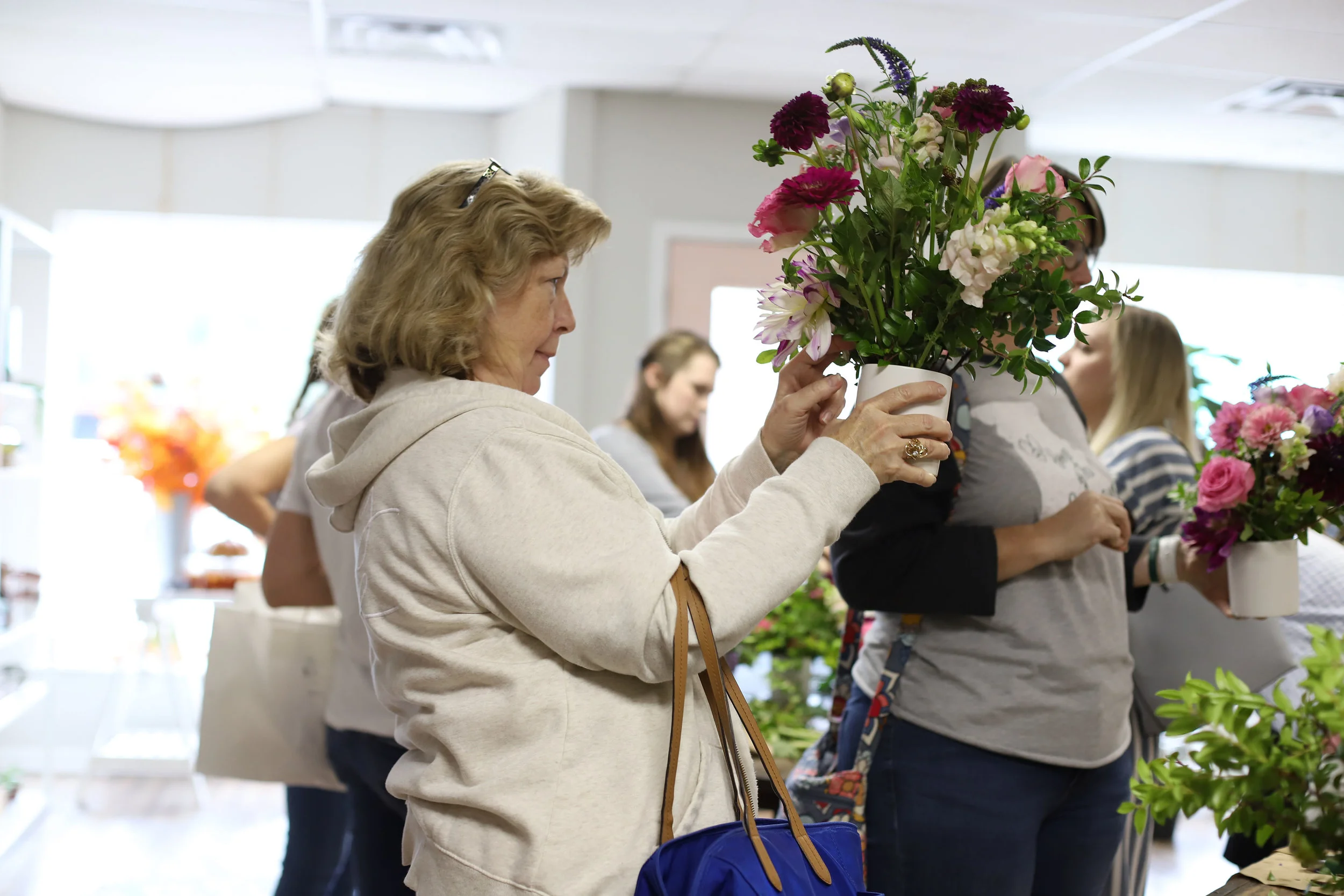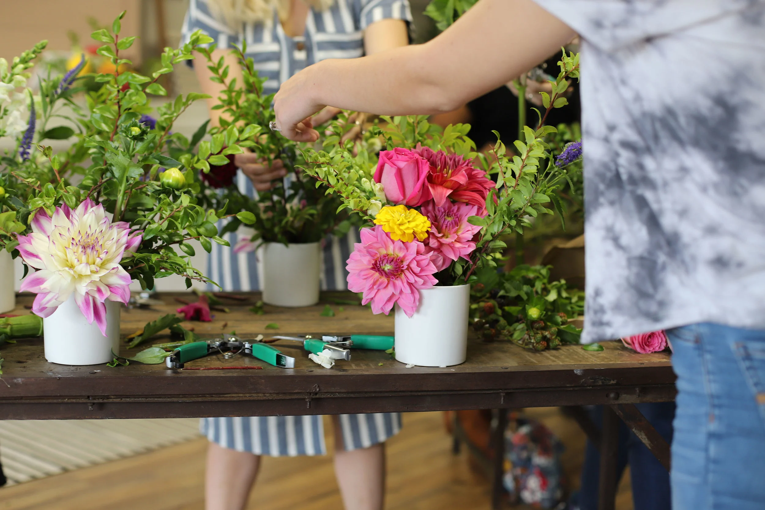 Each attendee selects their own bouquet pack to create their centerpiece.