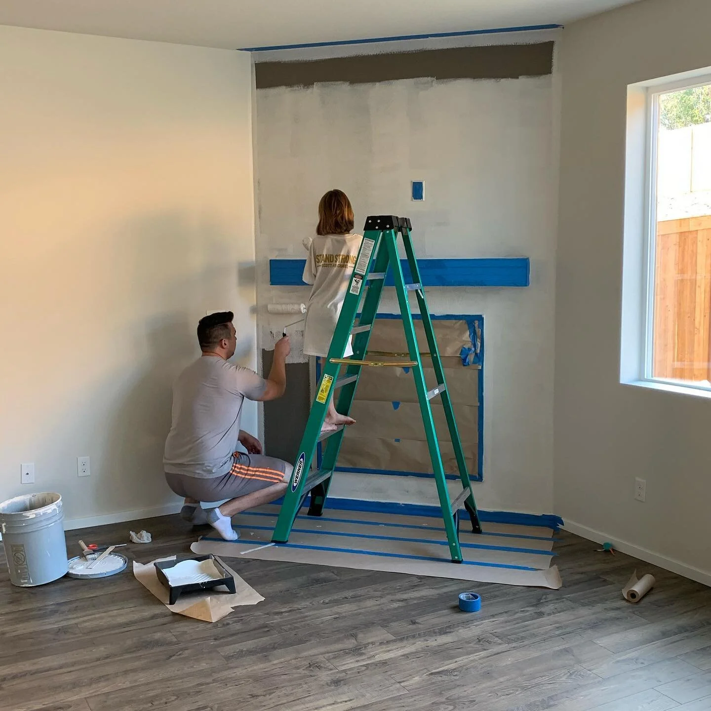 After taping everything off, we painted the whole wall in “City Loft’ to match the rest of the room. Look at my super cute helpers!
