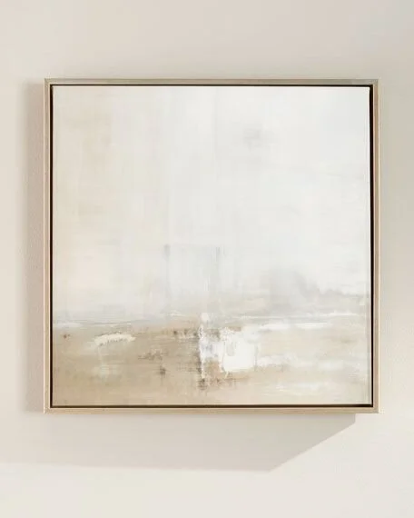 To soften the space, I hung this calming art piece above the console and I love the contrast between the light and the dark.