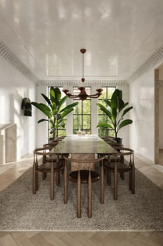 Should your chairs have arms? Traditionally, you find armchairs at the ends of the table and armless versions on the sides. I believe this rule can (and should) be broken. Depending on the size of your space and how your family uses it, should determine the arms you choose. Armless chairs save on space and can look very modern all around your table. Meanwhile, armchairs are often more comfortable, especially for those that have joint problems, but they take up more space. A bench option can also be great for families with young children and I highly recommend considering a banquette at any stage in your life.