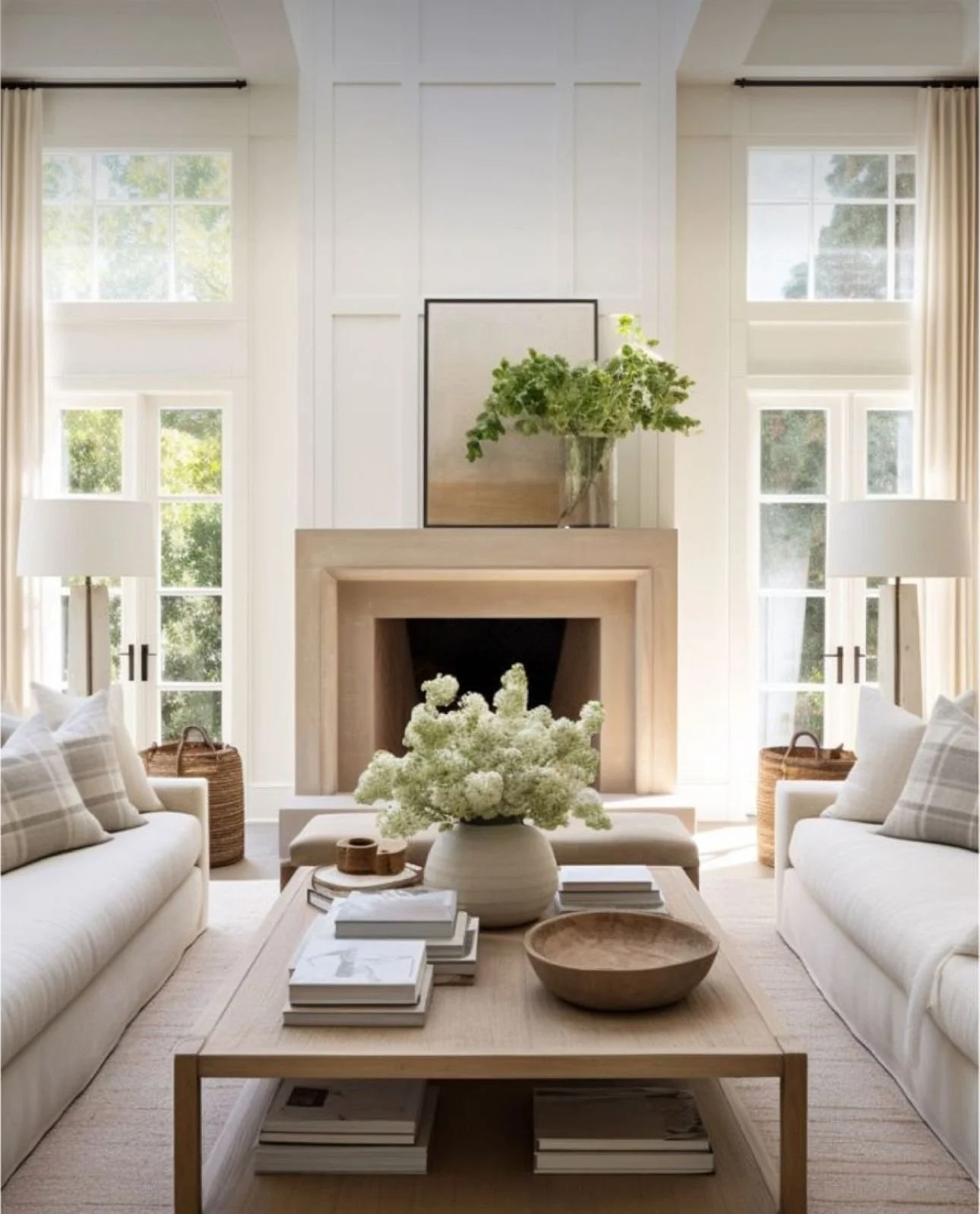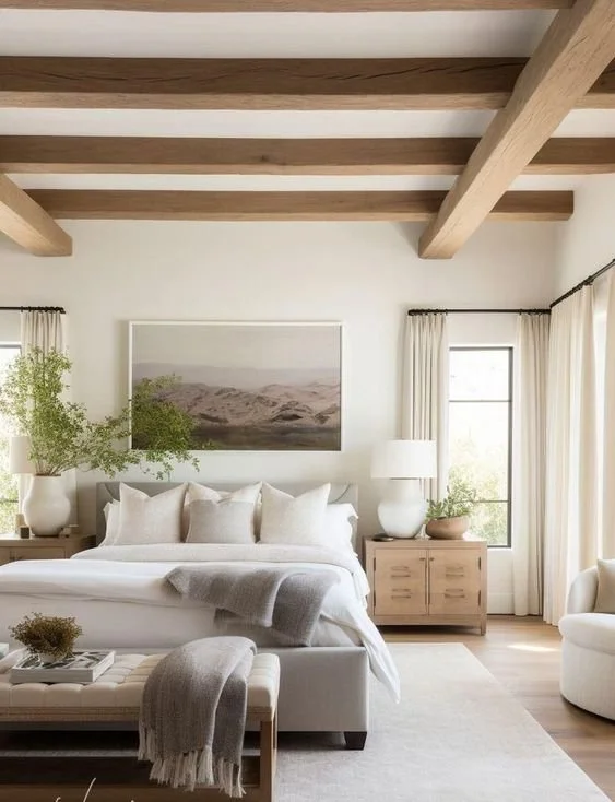 This room looks like the ideal spot for relaxation. I adore the nightstands, the large lamps, and the greenery that brings balance to the space.
