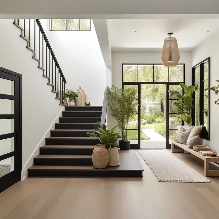 Can you imagine coming home to such a beautiful space? I can! I'm obsessed with these stairs, the door, and the overall simplicity of the space.