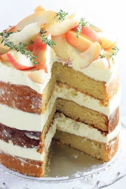 Three of my favorite things, white nectarine, thyme and limoncello all in a cake!