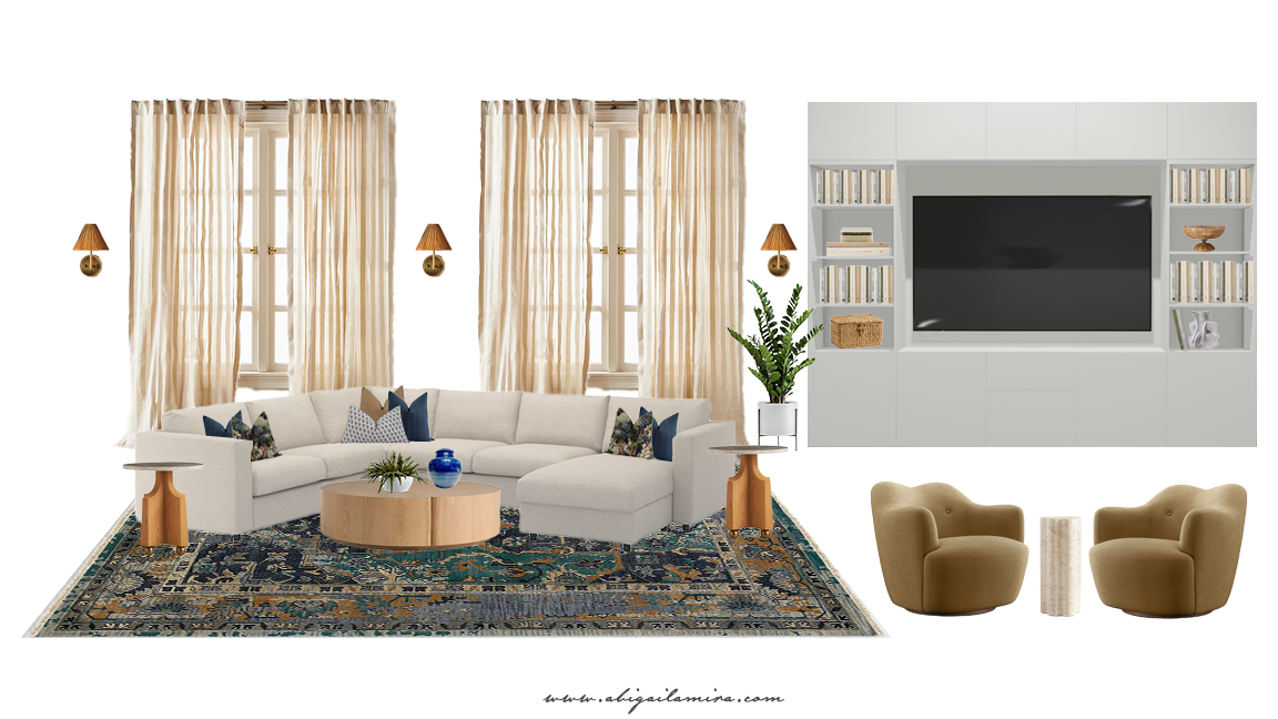 Basements can quickly become dumping grounds for items you don't know where to use. Make storage a priority using shelves, bins, and baskets. Consider regular decluttering sessions to maintain the cleanliness and organization of your basement. Styling your storage can also add to the aesthetic; consider using decorative boxes or open shelving to display curated items. You can utilize clever storage solutions like the entertainment unit I incorporated in this design to conceal everything.