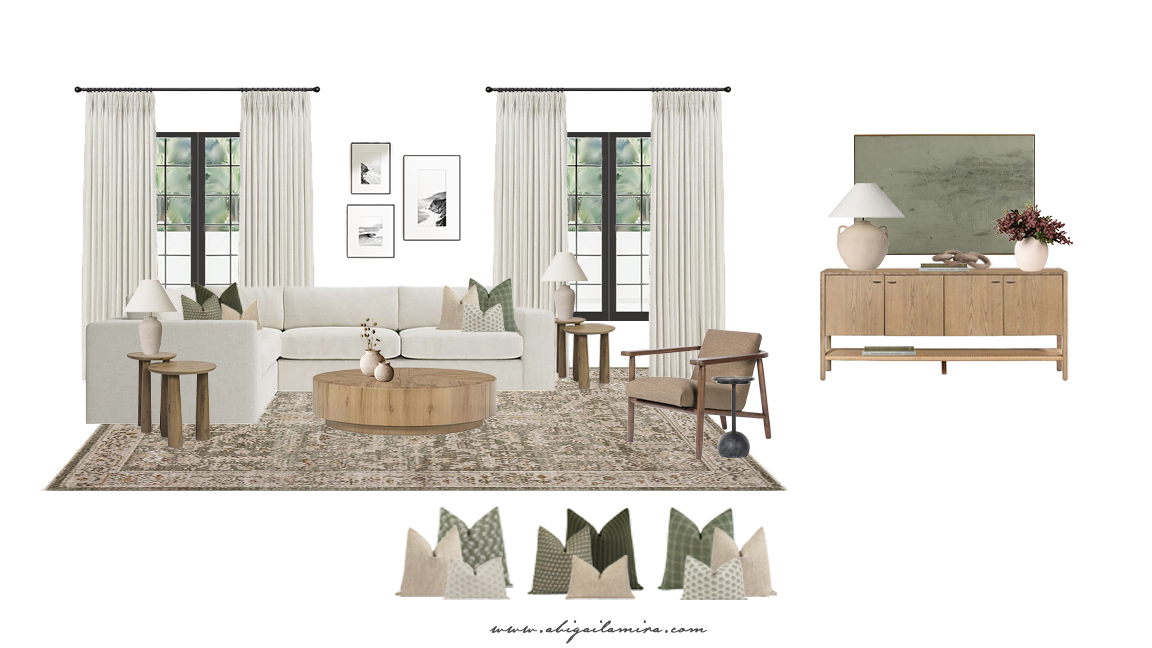 Designing a living room that feels warm, cohesive, and timeless often comes down to a thoughtful balance of color, texture, and layout. This space embraces a neutral palette while layering in natural textures and soft contrasts for a look that is both elevated and inviting.