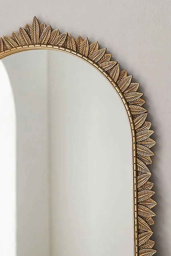 Let us take a moment to admire the handcrafted details in this mirror. An antique brass finish that can be used in any room.