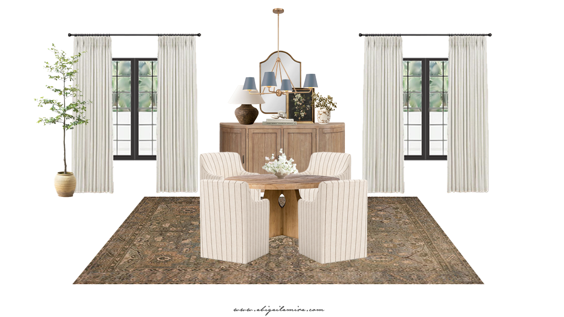 There’s something about a well-layered dining room that instantly makes a home feel more inviting. This design was created to feel warm, timeless, and effortlessly elevated — a space that feels just as perfect for everyday meals as it does for hosting.