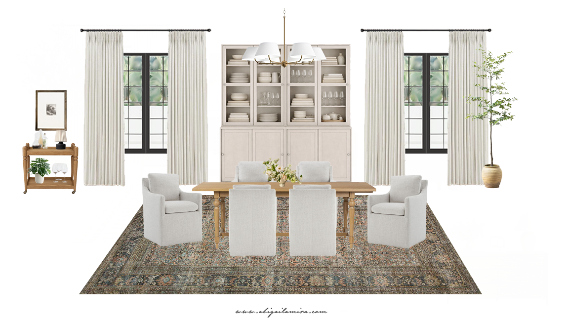 What I love most about this dining room is how approachable it feels. The symmetry creates calm. The neutral palette creates cohesion. The mix of wood, fabric, and subtle pattern creates comfort.
