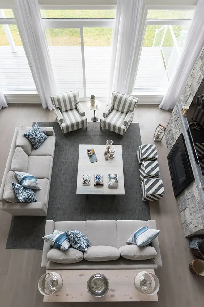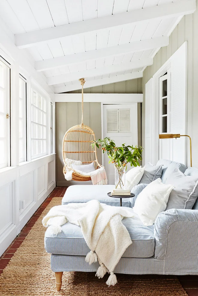 Comfortable Seating is one of our favorite things about these homes. Extra seating is ideal in summer homes for all your guests. If your home lacks the space for side chairs, trying tucking ottomans under your console tables or use them as a coffee table. We love the worn-in look of these IKEA chaises above.