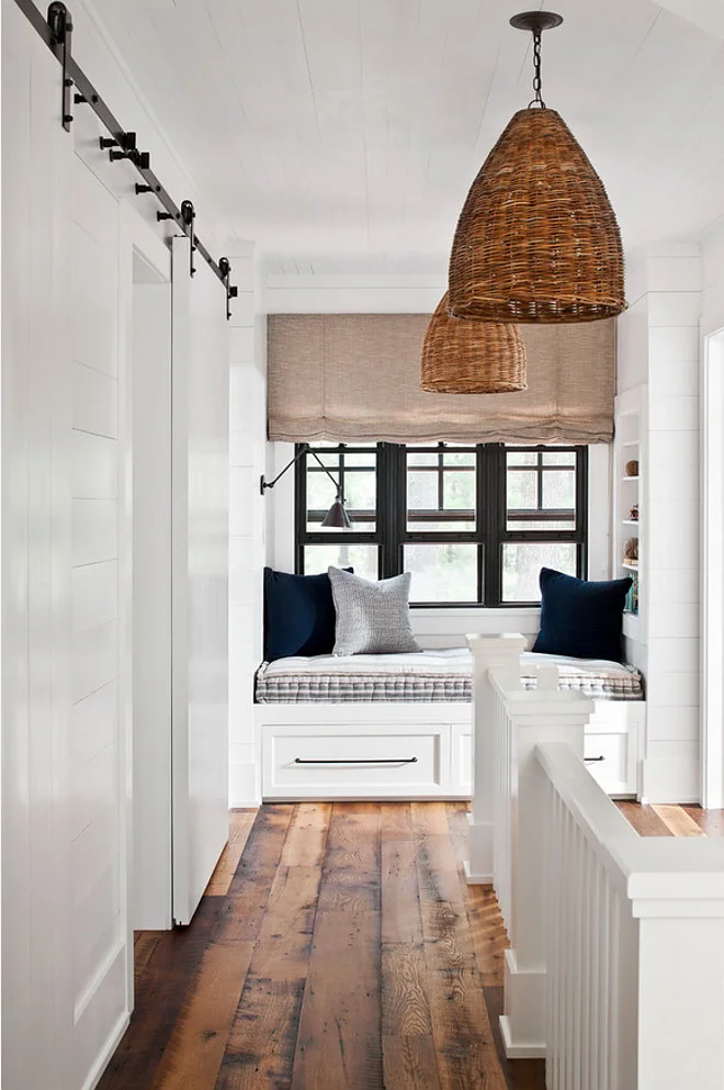 Most lake houses have smaller footprints and have to make every inch count. They often use beautiful built-ins to maximize their homes unique spaces. We love window seats that create a quiet spot to finish your summer reading list. Don't have a window seat? Adding a bench with some pillows against an empty wall in your home can create a similar spot.