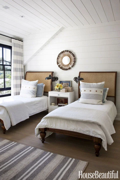 Make bedtime a calming retreat for your guests, children or even yourself! Keep rooms simple and be thoughtful with your colors. We love the different textures on the pillows, headboards and bedding.