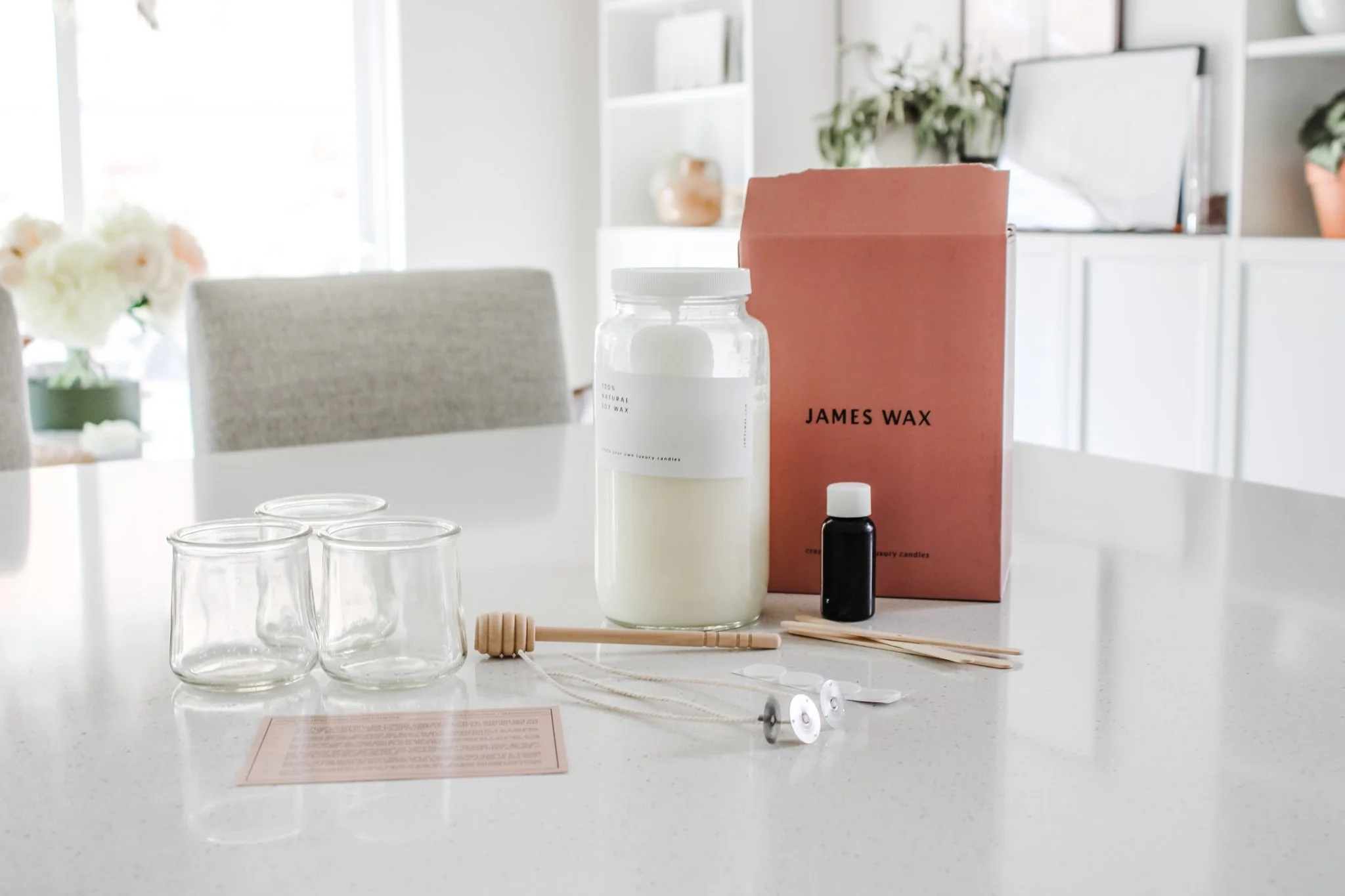 Today, I am sharing the easiest way to make beautiful candles in the sweetest little jars I saved from my favorite oui yogurts. I received this beginner-friendly candle-making kit from James Wax in their lovely mimosa scent. The scent is absolutely gorgeous with notes of mimosa, orange, and vanilla rum. I love that James Wax is made from locally grown soy wax, toxic-free fragrance, and essential oils. This project was so easy to do and there was no mess like you would get from traditional candle making!