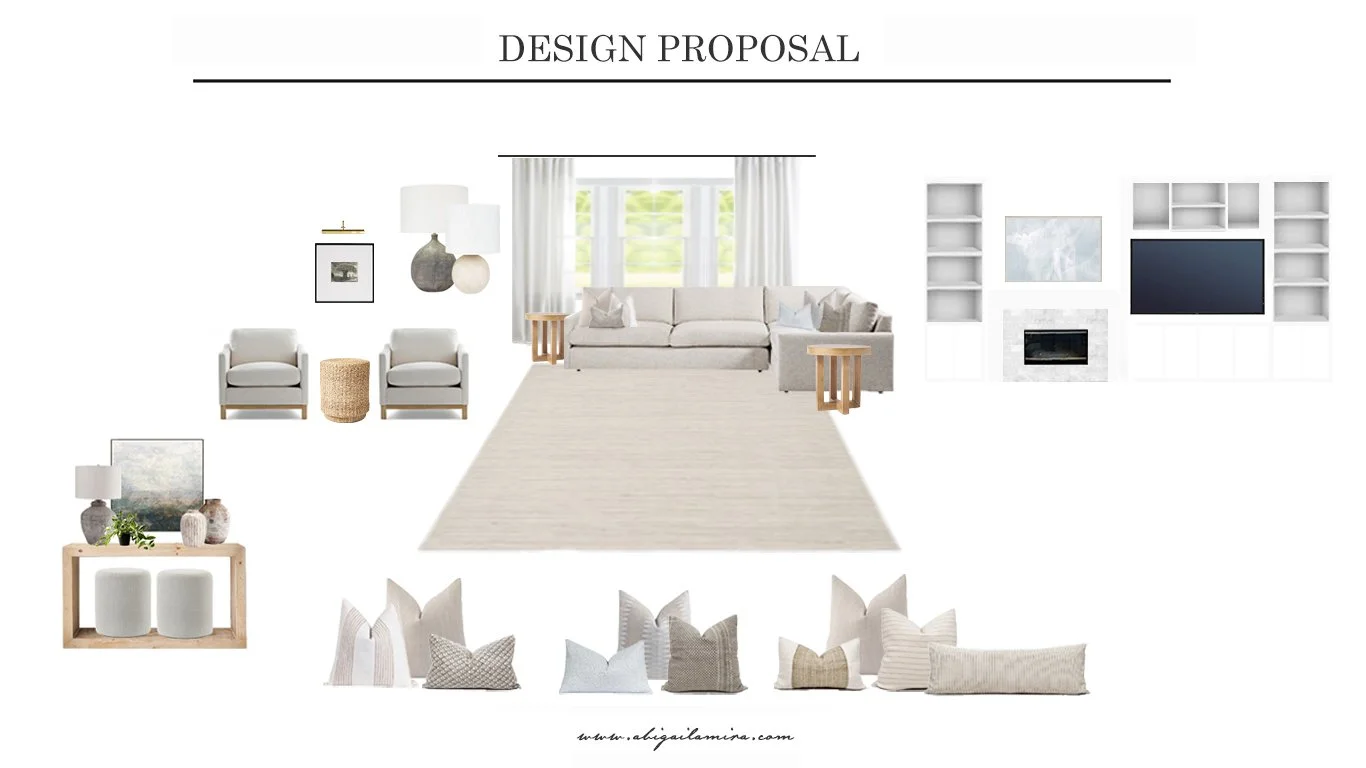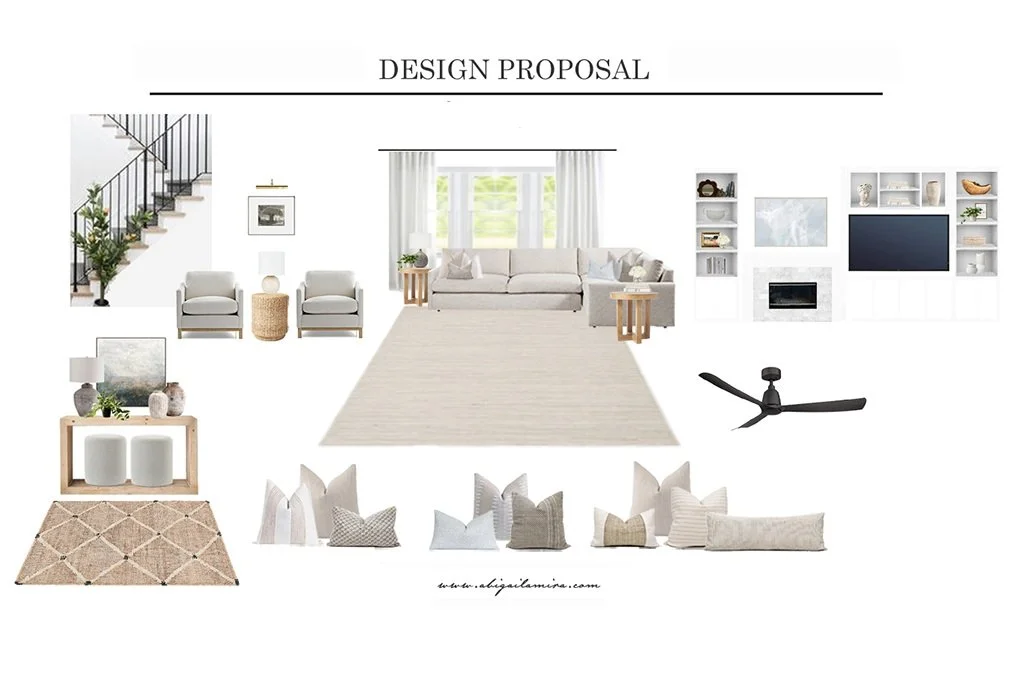 Next, we will send you a concept board with a suggested style direction for your space. Then, we will go over the floor plan and your design board with suggestions for your space. You will get up to three design revisions with your Full package. The Full Package has a 30-day timeline where we can chat about your floor plan, design, and review options for different pieces.